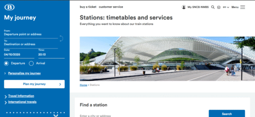 صورة الموقع الرسمي لمحطات القطار في بلجيكا يمكنك من خلاله شراء تذكرتك بكل سهولة