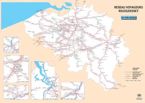 شبكة السكك الحديدية البلجيكية تُدار أساسًا من قبل الشركة الوطنية NMBS/SNCB وتضم مئات المحطات من المحطات الدولية الكبرى في بروكسل وأنتويرب وغنت ولييج إلى محطات إقليمية وصغرى تخدم القرى والضواحي
